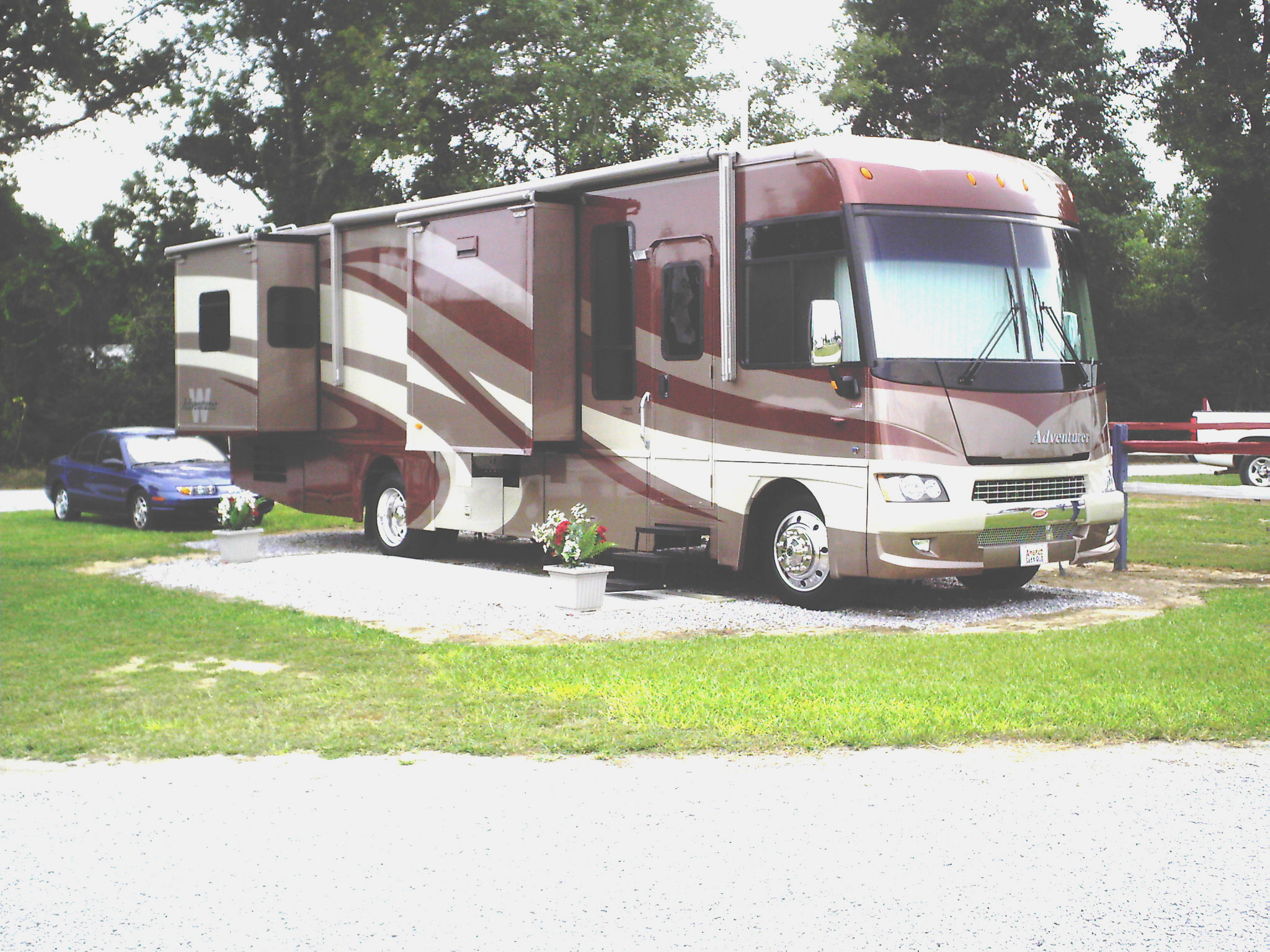 Below are pictures of our motorhome,.a 2007 Winnebago Adventurer which we bought brand new. I am still lovin' it, and still live in it now. We have been full time RV living for a great many years.